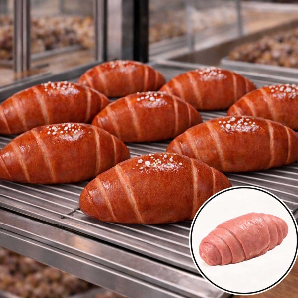 붉은색의 홍국쌀이 들어가 먹음직스러운 붉은색의 홍국쌀 소금빵 생지 ※토핑용 소금은 별도로 동봉되어있지 않습니다. #PB제품 #냉동생지 #시오빵 #냉동베이커리